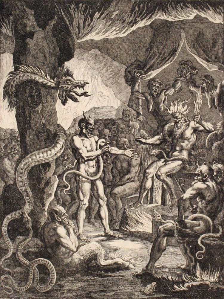 L’enfer se vide de son bestiaire médiéval. Les démons deviennent moins effrayants et leur apparence se rapproche de l’humain comme dans la gravure de Francois-Chauveau. L’apparence du diable, inspiré par les images de sabbats de sorcières, ressemble de plus en plus à un satyre.