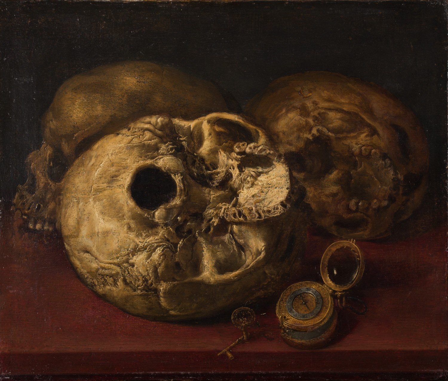 Dans les vanités façon nature morte, on retrouve des accumulations d’objets qui ont chacun leur symbolisme. Les bijoux, les pièces de monnaie, les couronnes et les armes représentent la vanité de la richesse et du pouvoir.